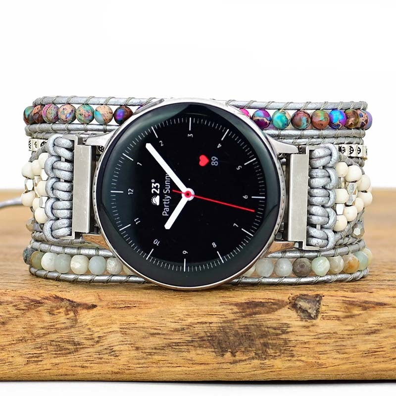 Material: Jasper, Crystal, Amazonite, Alloy Bead, Leather, Stainless Steel Connector